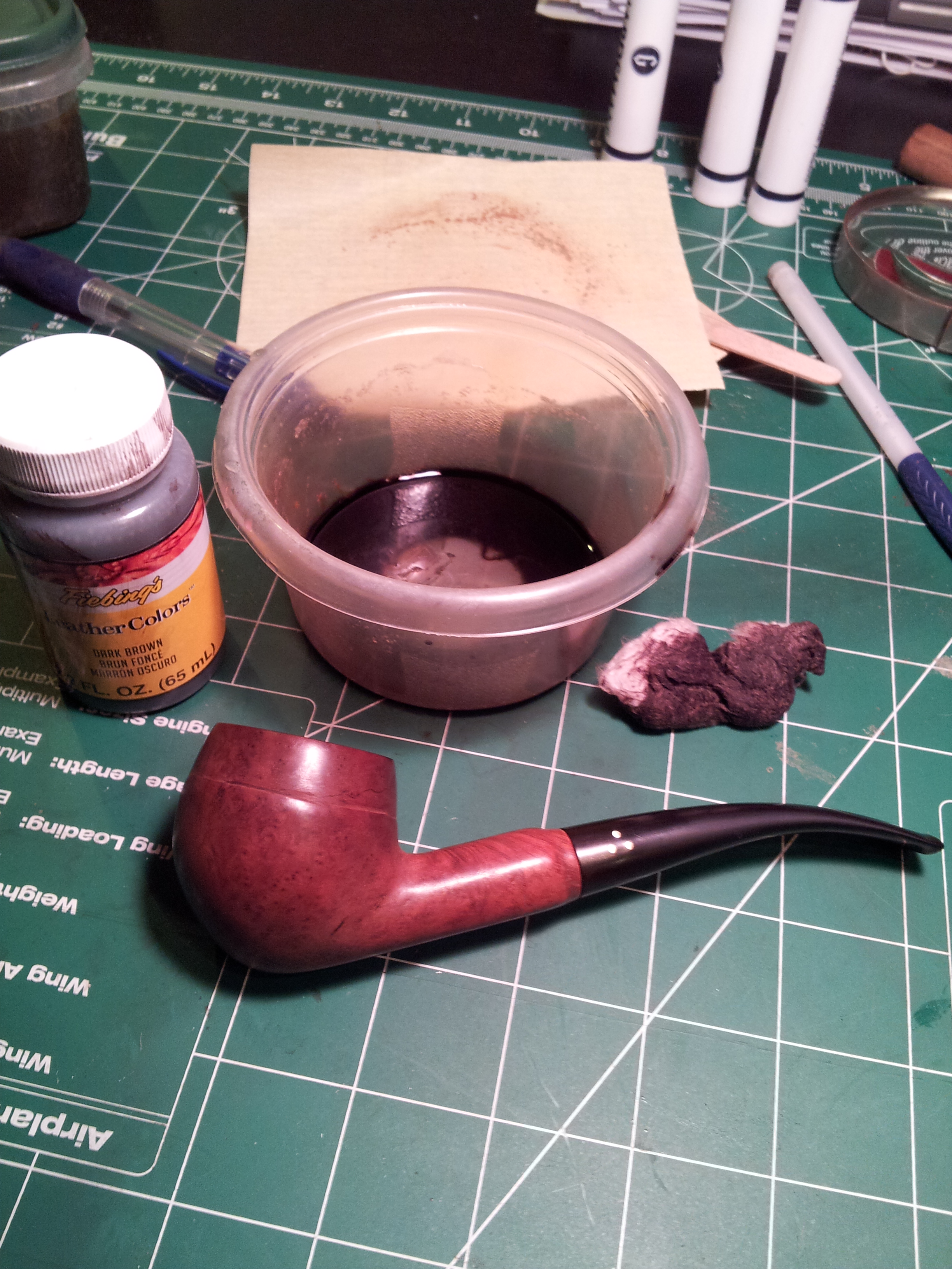 Finally, this pipe was ready for the buffer. I buffed it wth Red Tripoli followed by White Diamond and several coats of wax. The finished pipe is shown below. I’m quite pleased with the “tea egg” colouring of the final product. The pipe looks good and feels great in the hand. It will be a fine addition to my pipe rack. I hope to christen it shortly with a nice slow bowl of MacBaren’s Scottish Mixture.