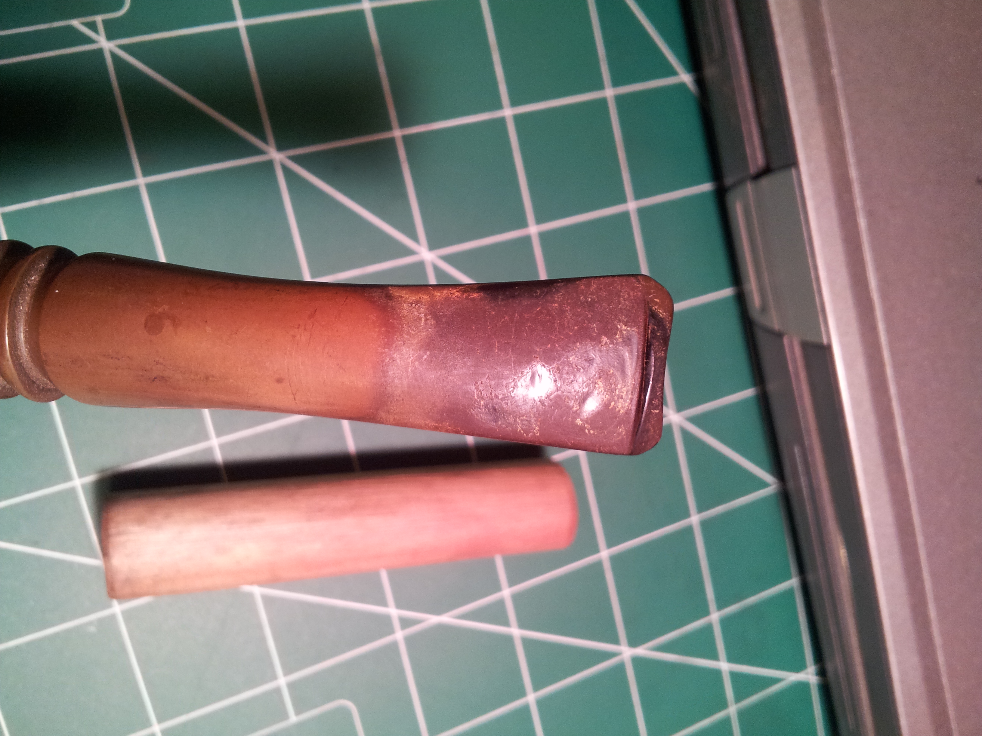 The rest of the cleaning proceeded without incident. The internals were cleaned with pipe cleaners and 99% isopropyl alcohol until a fresh one came out clean, and the old manky rock maple filter was replaced with a clean fresh one. After the Oxyclean bath, I used 0000 steel wool and 400-2000 grit wet sandpaper to remove the oxidation and a bit of tooth chatter. Then the whole pipe was treated to a 3-step buffing with Red Tripoli, White Diamond and wax.