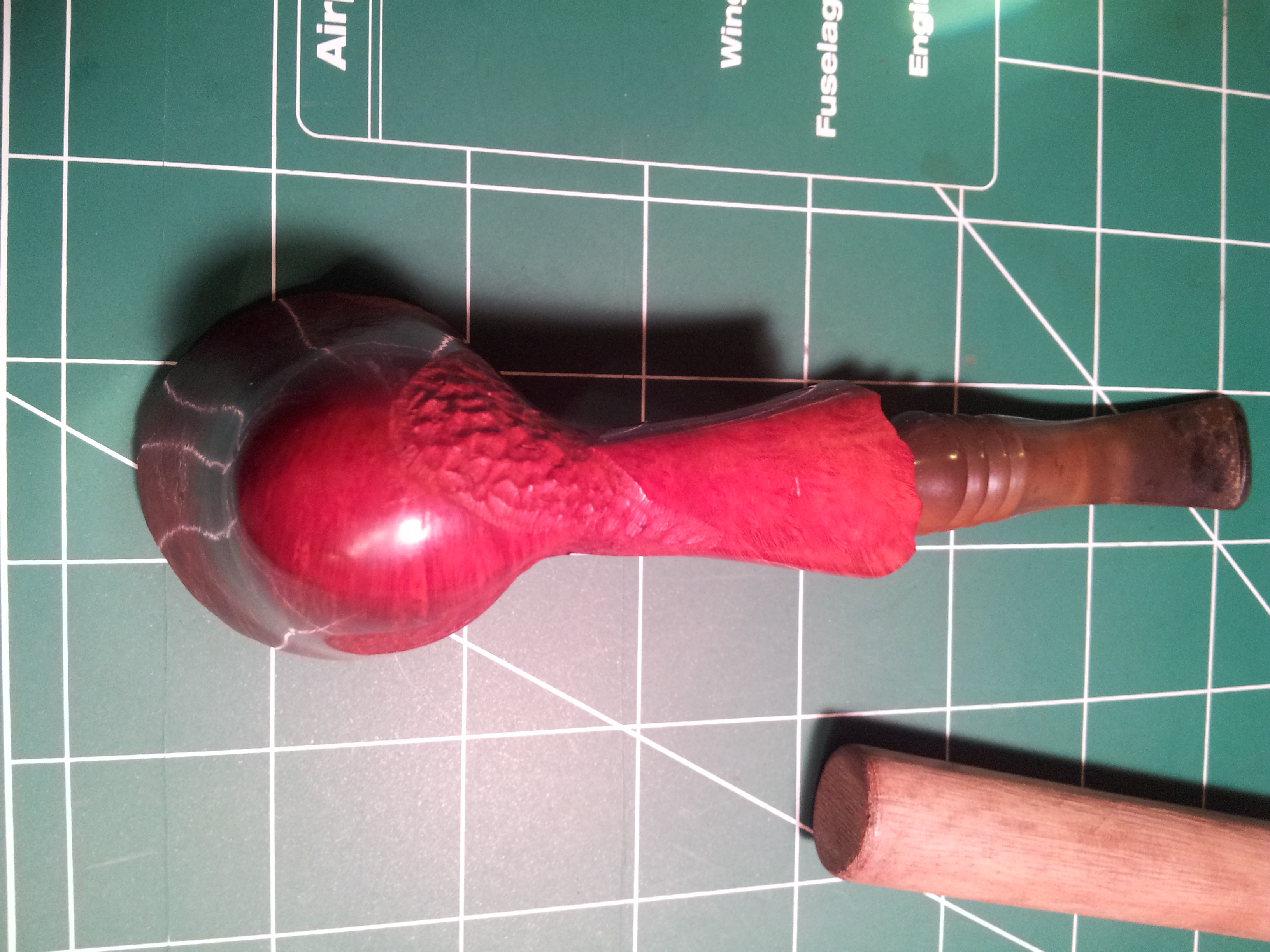 Regardless of exact dating, it’s a beautiful pipe made of top-grade briar, without fills or flaws. At some point, I may try to correct or minimize the chip in the pipe’s top, but for now I’ll leave it alone for fear of making things worse. I paid a cheap price, but this is no cheap pipe – a new pipe of similar quality would run me about 10 times the price I paid for this one! Not a bad catch at all.