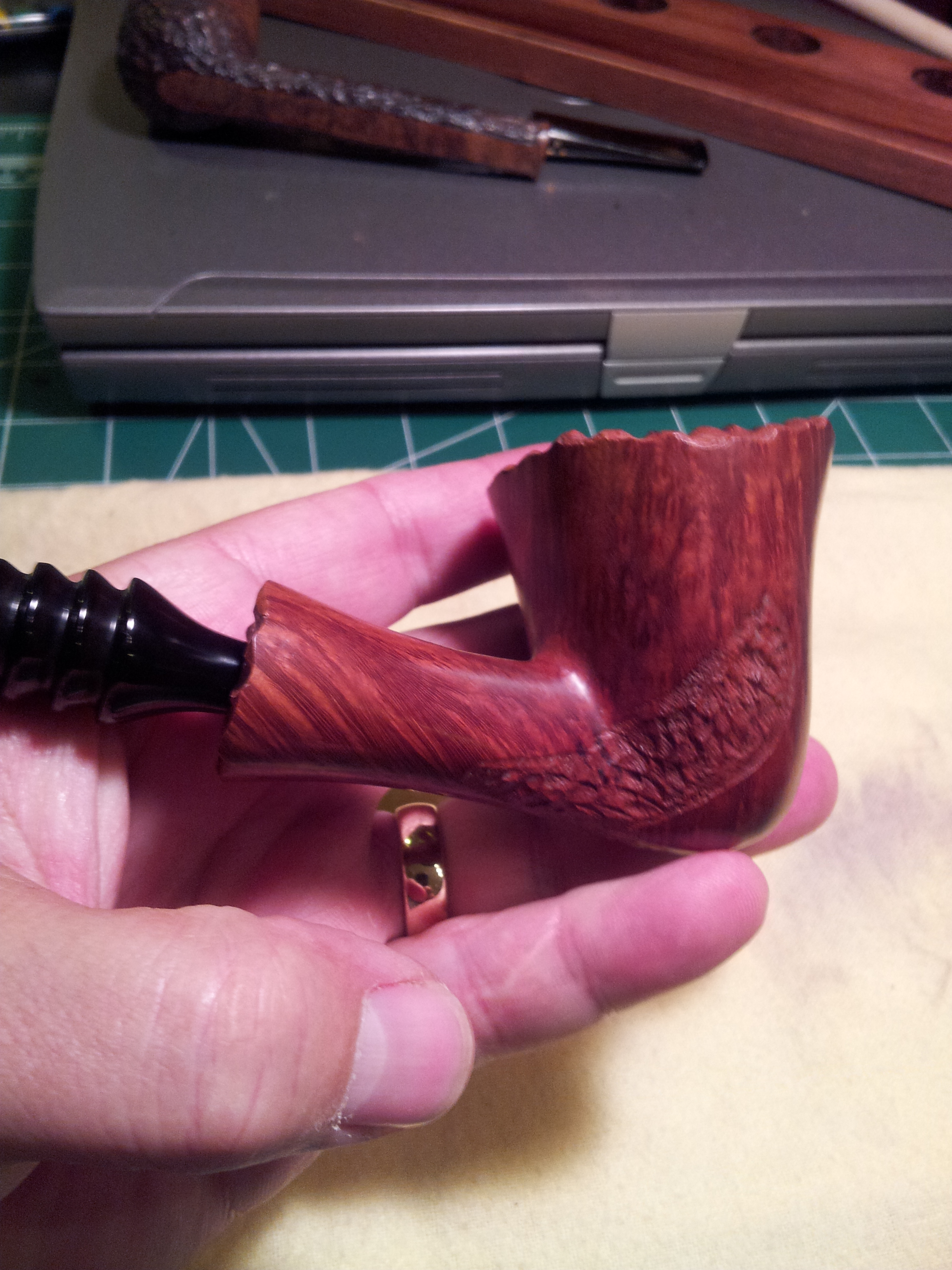 With Part One of the mystery solved, it was on to Part Two! I knew I had a Brigham freehand, but what exactly was it? I had initially thought it might be a Brigham Valhalla, a (generally) smooth series of freehands produced in the 1970’s along with their cousins, the rusticated Norseman series. The Brigham website is rather sparse on detail, but I found some great information posted by Rusty on Christian Pipe Smokers”
