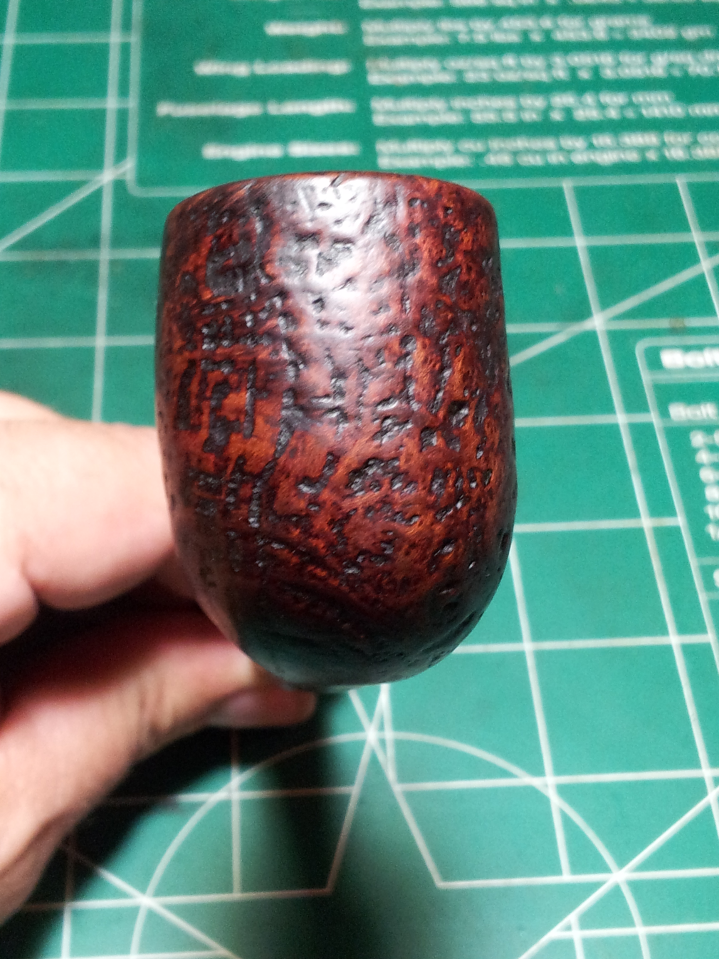 I was happy with the overall finish, and the nearly undetectable repair, so the next step was buffing and waxing. I gave the pipe a light buffing with Red Tripoli and White Diamond compounds before applying two light coats of wax. I’ve found that several light coats give a better depth of shine than one heavy coat. It also makes it easier to get the wax out of the tiny pockets in a rusticated finish. There were a few stubborn pockmarks in the finish that wax got stuck in, so I washed the flame of a lighter gently over the surface of the pipe to carefully melt the wax out. I finished with a hand buffing using a soft clean flannel cloth.
