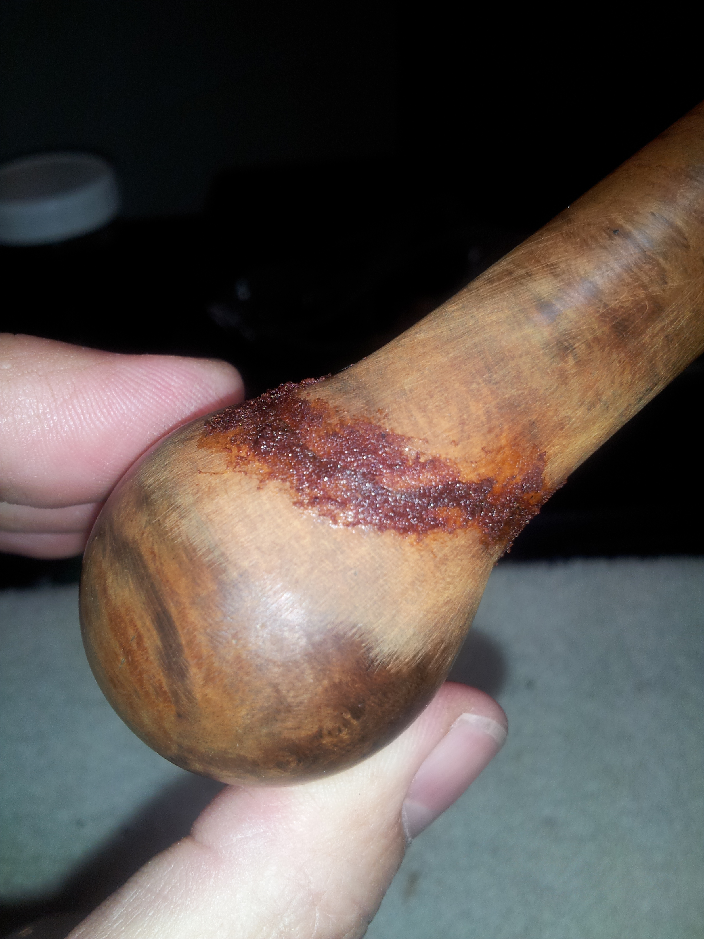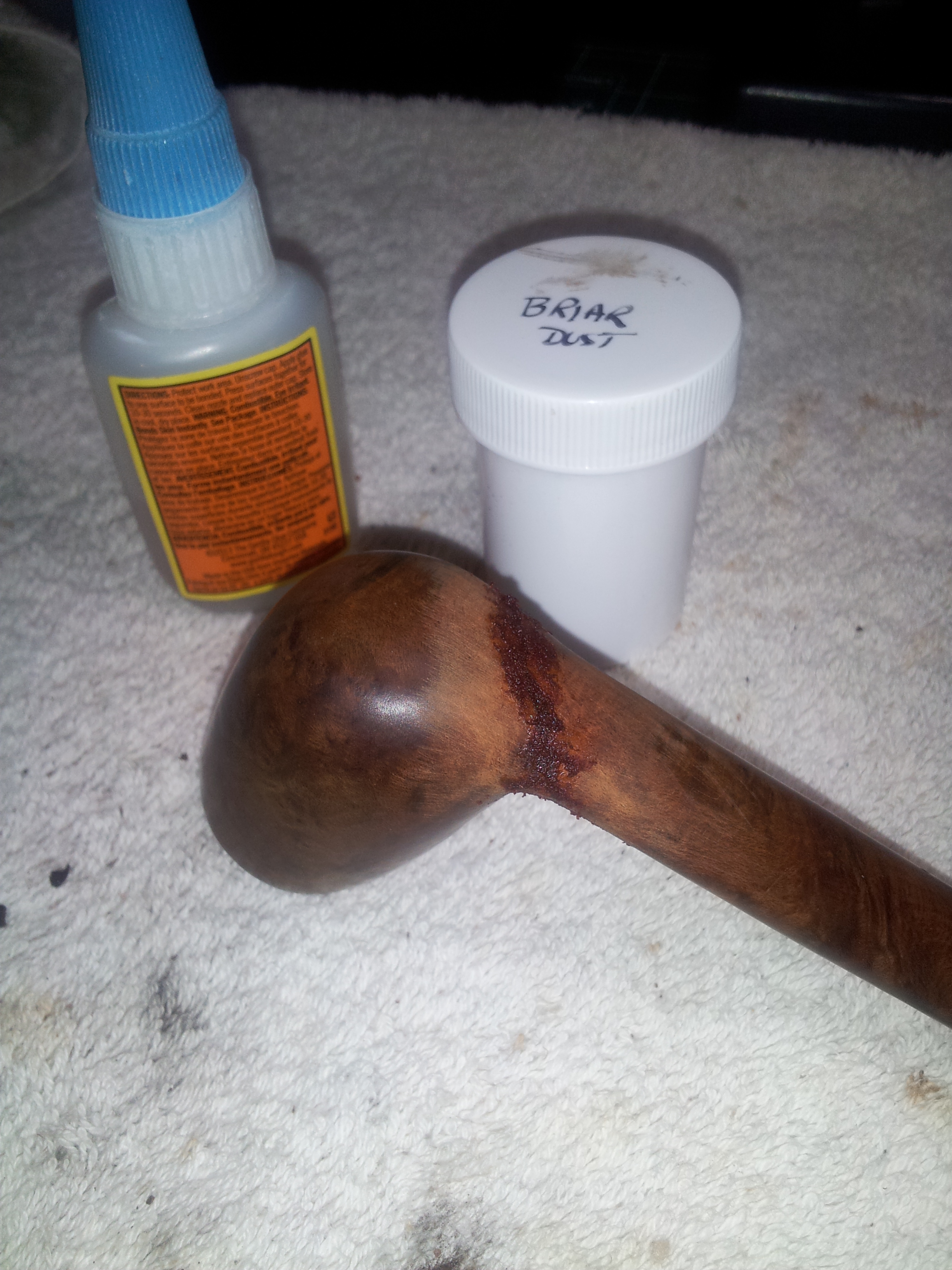 The fills not sticking remains a mystery. I imagine it has something to do with glue incompatibilities, though I haven’t heard of CA glue NOT sticking to anything. A head-scratcher for sure. I even went so far as to pick out the top layer of old glue to create a trough for the CA glue/briar dust fills. Should have worked in theory, but…. 😉 Keeps things interesting!