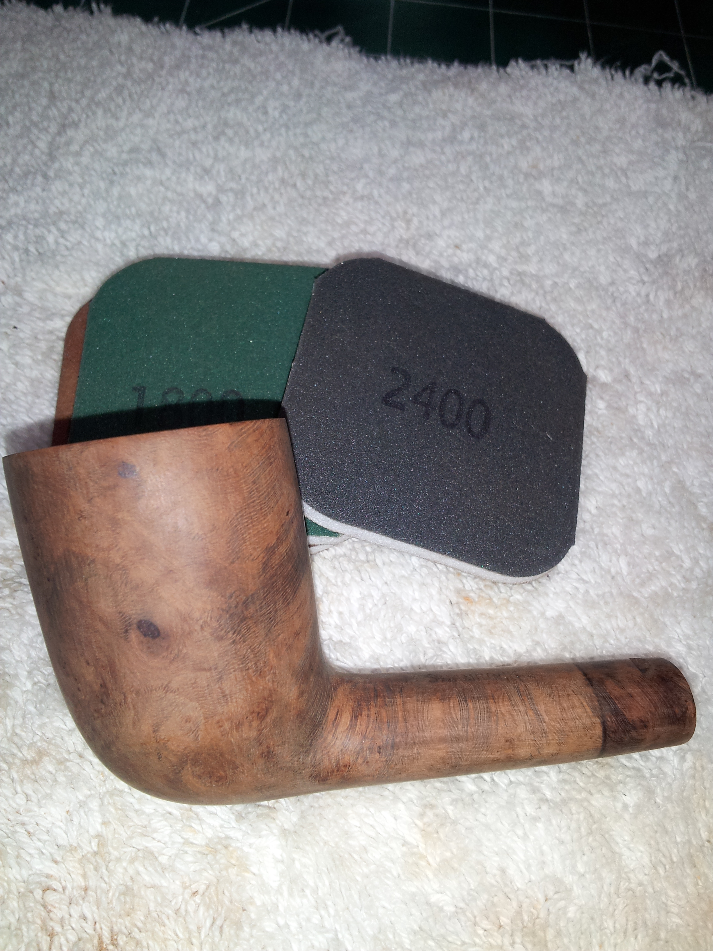 I finished the stummel work with a few alcohol-dipped pipe cleaners (the internals were very clean) before polishing the briar with MicroMesh pads. You can see how the shine developed as I moved through the grits.