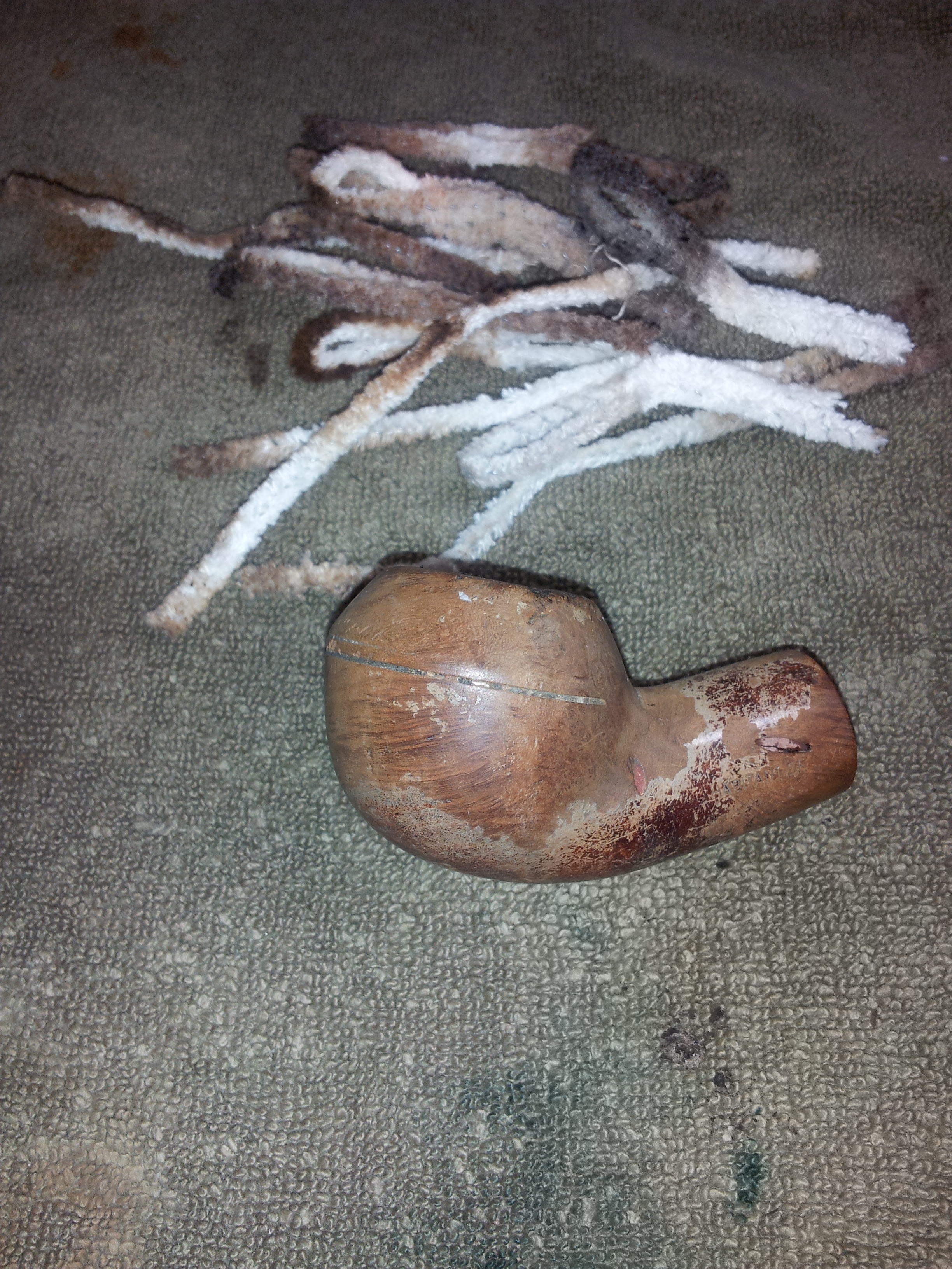 20151004_094849 20151004_094857 20151004_094909 20151004_094922 20151004_094937 20151004_094947I started out by reaming the bowl back to bare briar. The tobacco chamber was in good shape. No cracks or burnouts, and the draft hole met the chamber floor very neatly. Satisfied with the structure of the stummel, I dropped it into an alcohol bath to dissolve the lacquer coating and soften the accumulated tars. When I removed it from the bath the next morning, I used pipe cleaners and more alcohol to clean the bowl and airway before removing the last vestiges of lacquer with some nail polish remover and cotton pads.