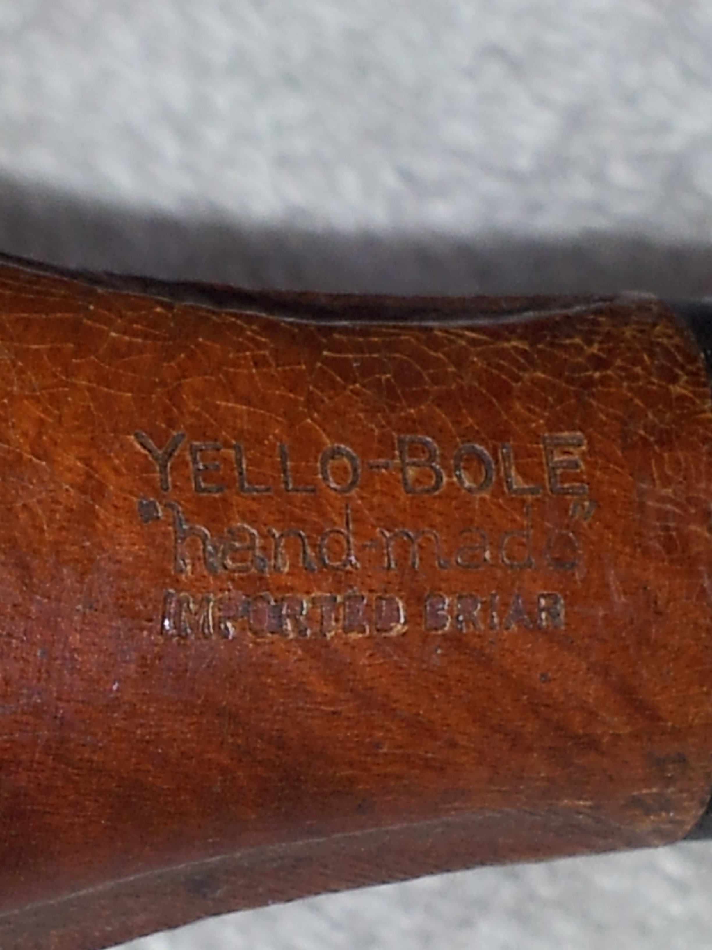 Several recent posts on RebornPipes and PipesRevival about CustomBilt pipes reminded me that I had a very similar pipe in my refurb box waiting for my attention. I found the pipe, but when I looked at the stampings, I discovered that it was not a CustomBilt at all; rather, it was stamped “Yello-Bole” over ‘“hand made”’ over “Imported Briar”. The stem was also stamped with “HM”. If the stampings weren’t enough to establish the pipe’s provenance, patches of the original yellow bowl lining were clearly visible in the tobacco chamber.
