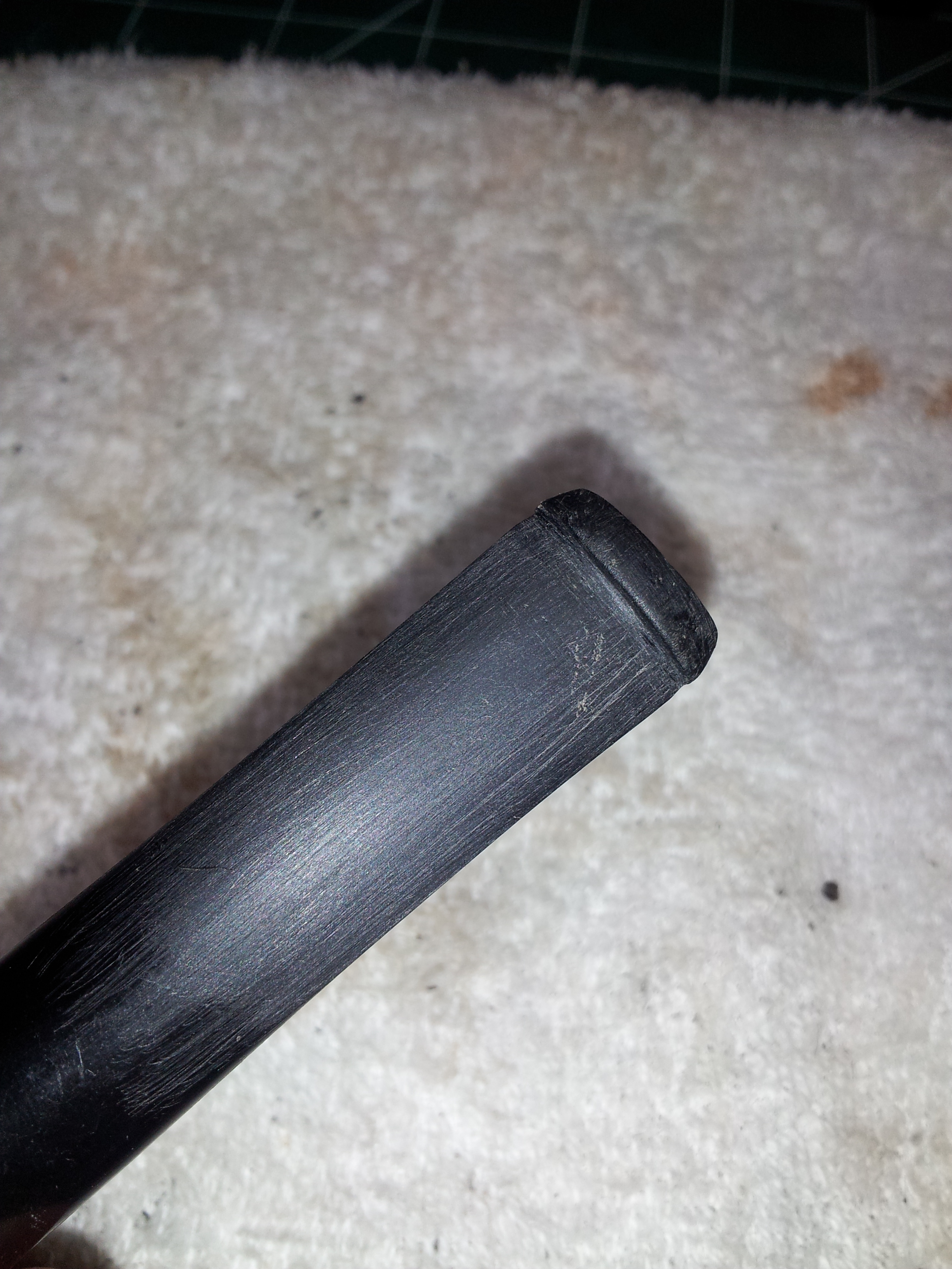 Word to the wise – when dealing with a nylon stem, do what I should have done in the first place and enlarge the tenon with a few layers of CA glue. It doesn’t take much time or effort, and if you add too much glue, it’s easily removed with sandpaper. This is the route I eventually took with this stem, and it now fits snugly, though the tenon looks a bit worse for wear.