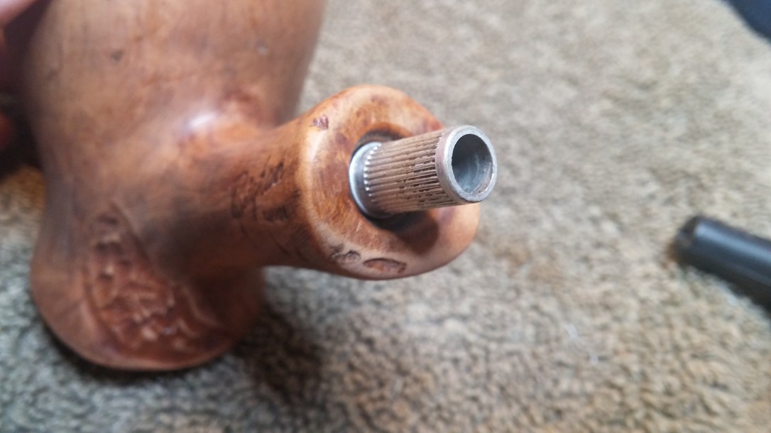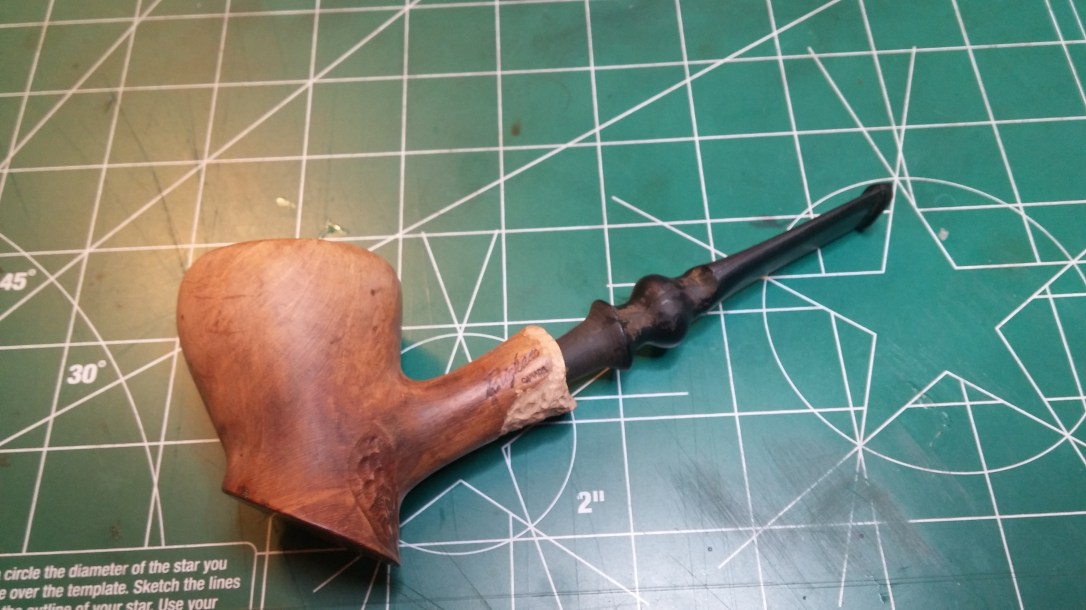 I selected a new freehand style replacement stem for this Brigham, settling on a fancy stem that more closely resembled the turned stems originally used on these pipes.