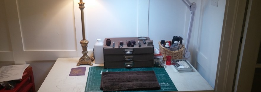 I was asked recently about my pipe repair and restoration setup, so I thought I’d do a little write-up here. Though there have been a few changes over the years, the core tooling and supplies have remained basically the same.