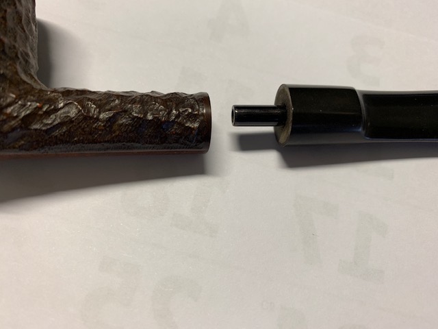 None of the stems (yours nor mine) are pinned. This is consistent with the Canuck series. Only Brigham pipes with system were pinned.