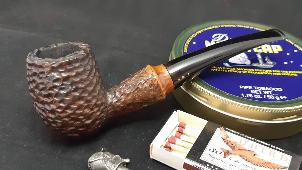Still muttering to myself about this unknown piper’s poor life choices, I spent the better part of an hour carefully cleaning the paint from the deep rustication. I’d wipe the surface of the pipe with a cotton pad dipped in alcohol, which both softened the paint and highlighted the white specks against the briar, then pick at the paint with my dental pick to remove it. This was a tedious process, but eventually I had a clean stummel.