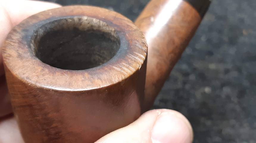 The right side of the rim was especially beaten up, with ridges of briar covering most of that half of the rim. To smooth things out, I topped the bowl very gently.