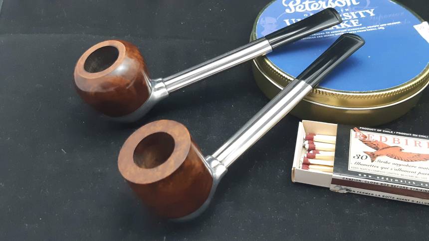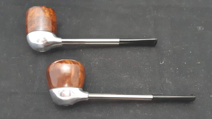 This pair of Ronson 3-Way pipes is certainly looking more inviting now than when they first hit the worktable. The briar bowls are clean and refreshed and the polished aluminum shines like Sputnik in the night sky. The pipes are very lightweight overall, which is part of the ageless appeal of metal pipes, but the briar bowls are heavier than the rest of the pipe so tend to drag the bowl end downwards when the pipe is in the teeth.