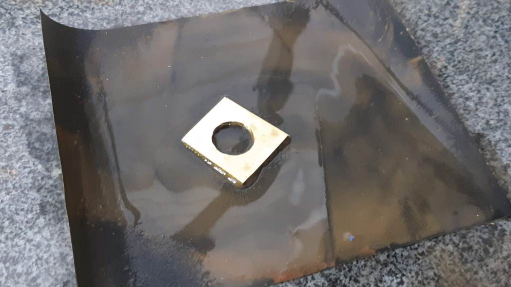 Rather annoyingly, none of my local hardware outlets carried any brass fittings larger than those suitable for use on, say, a jewelry box or the like – much too small for this pipe shank! In the end, I had to get creative and found a piece of brass plate at a hobby shop to work with.