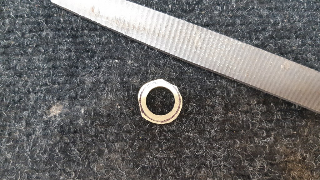 Using the stem as a template, I traced out a circle on the brass to indicate the final size of the piece. Then it was back to the vise and hacksaw to remove the excess brass before getting down to the file work.