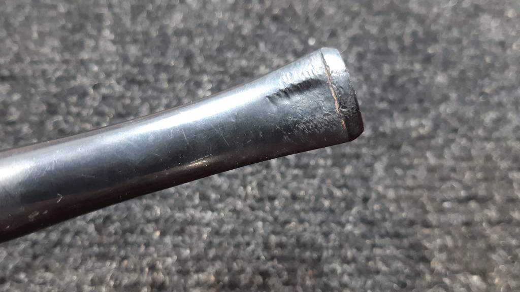 The original stem was made from nylon, a material that once was considered ultra-modern and desirable but has since fallen from favour among pipe manufacturers. On the plus side, nylon is nice and soft in the teeth. On the down side, nylon is nice and soft in the teeth – and thus prone to deep tooth dents that cannot easily be repaired.