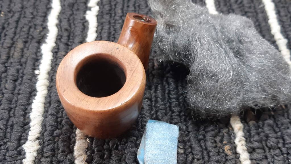 When I had smoothed out all but a few spots on the rim, I gave the briar a quick polishing with 0000 steel wool and reassessed the situation.