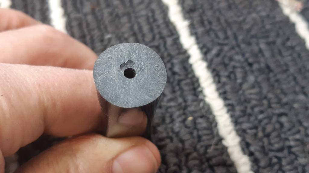 For the new tenon itself, I cut a section of appropriately sized Delrin rod and drilled out a 5/32″ airway.