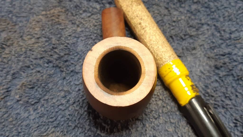 I began the refurbishment of this old Billiard by reaming the chamber clean. The briar was in great shape under the old cake.