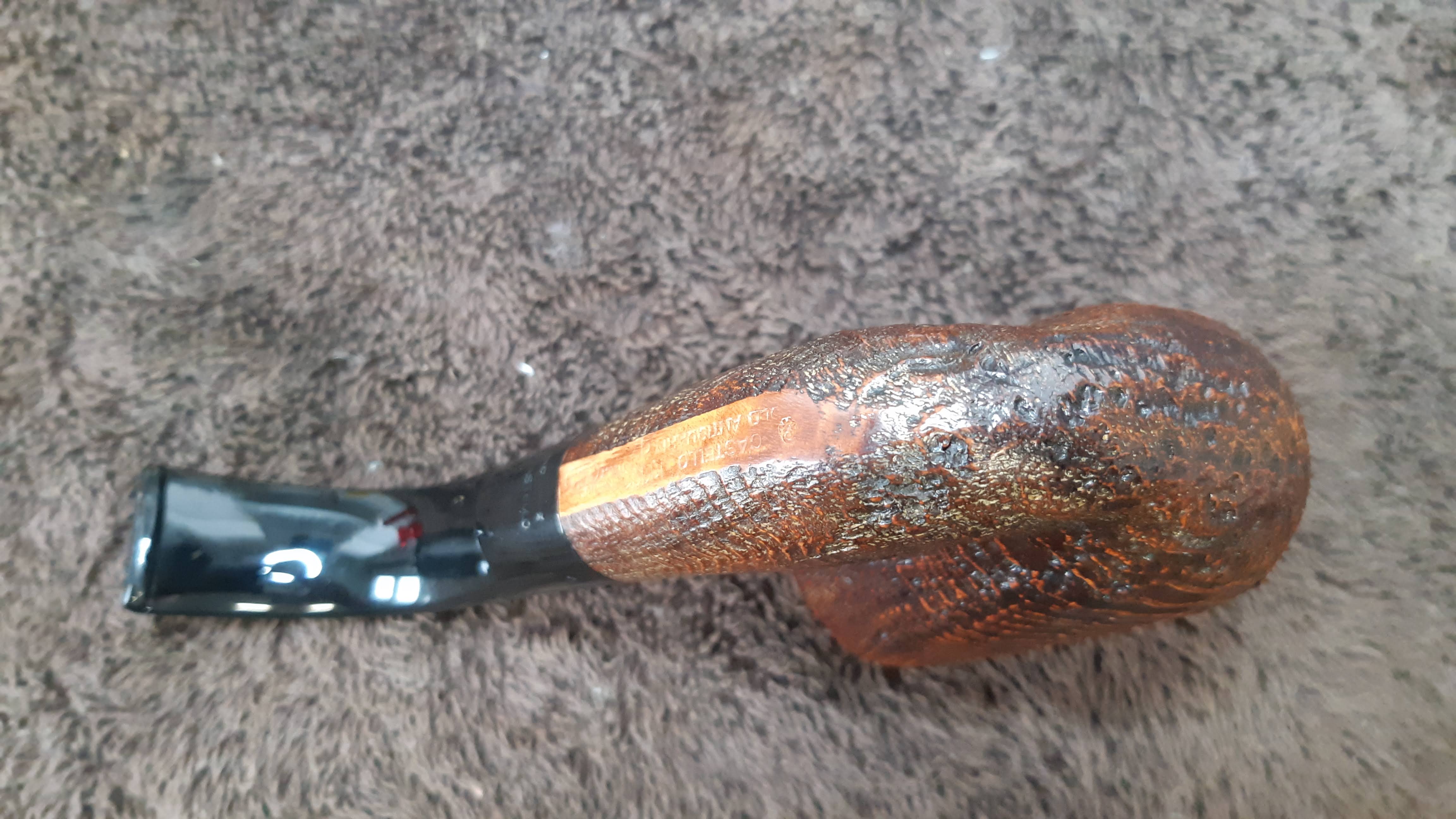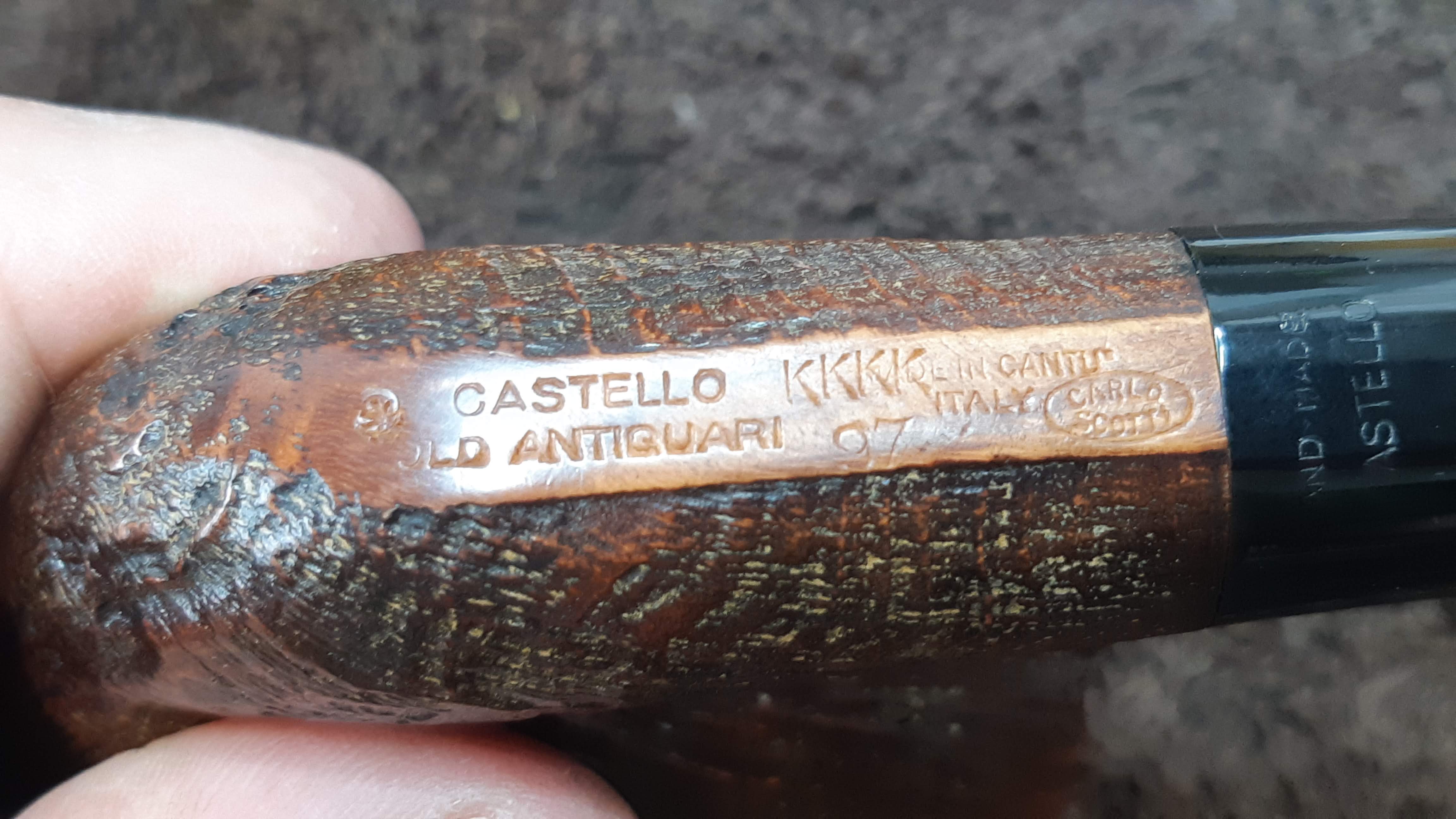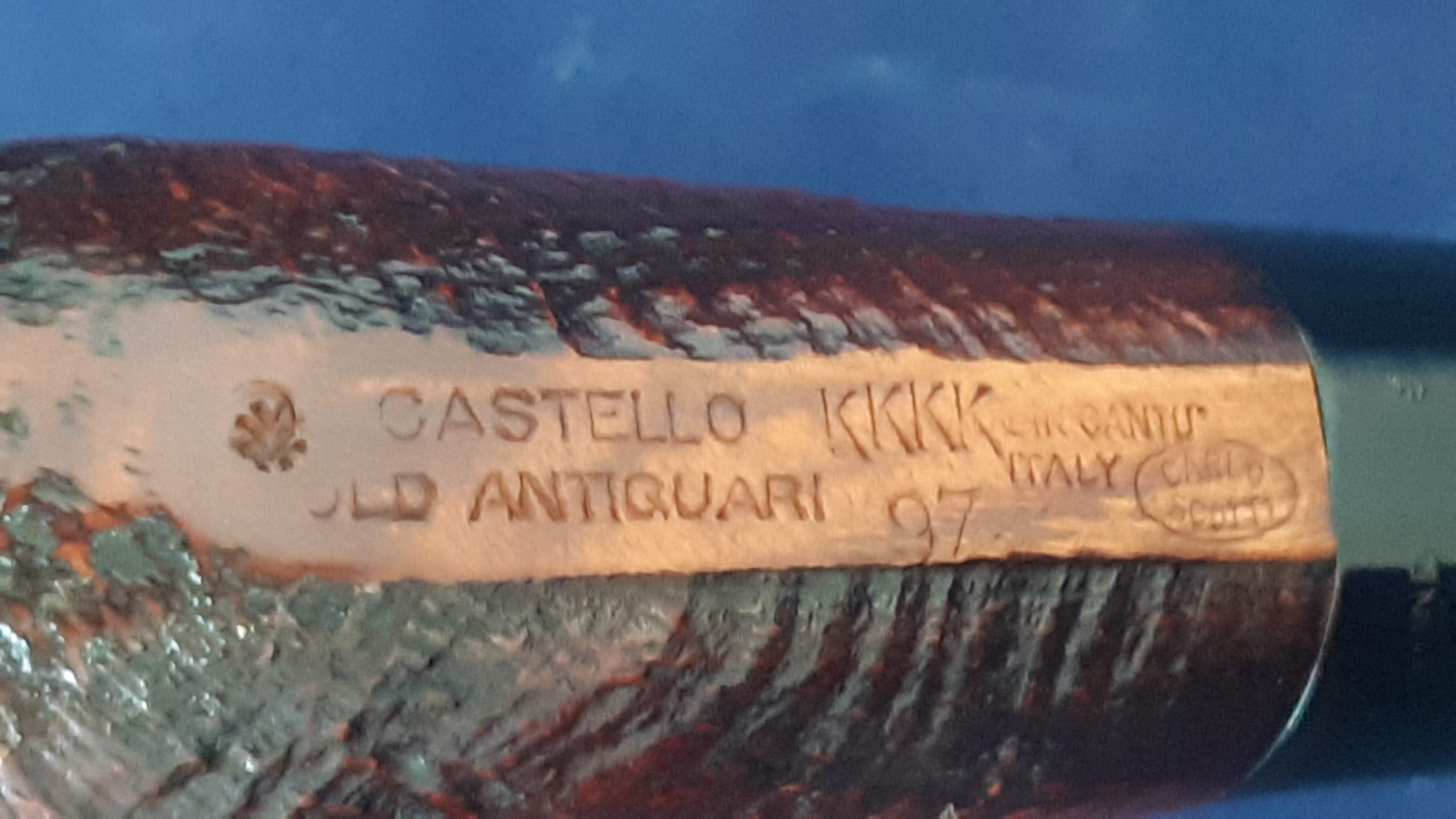 The smooth patch of briar under the shank was stamped with a star/asterisk then “Castello” over “Old Antiquari” then “KKKK” over “97” followed by “Made in Cantu” over “Italy”. Right next to the stem/shank junction was another stamp that reads “Carlo” over “Scotti” in an oval. The stem is also marked with “Hand Made” over “Castello”.