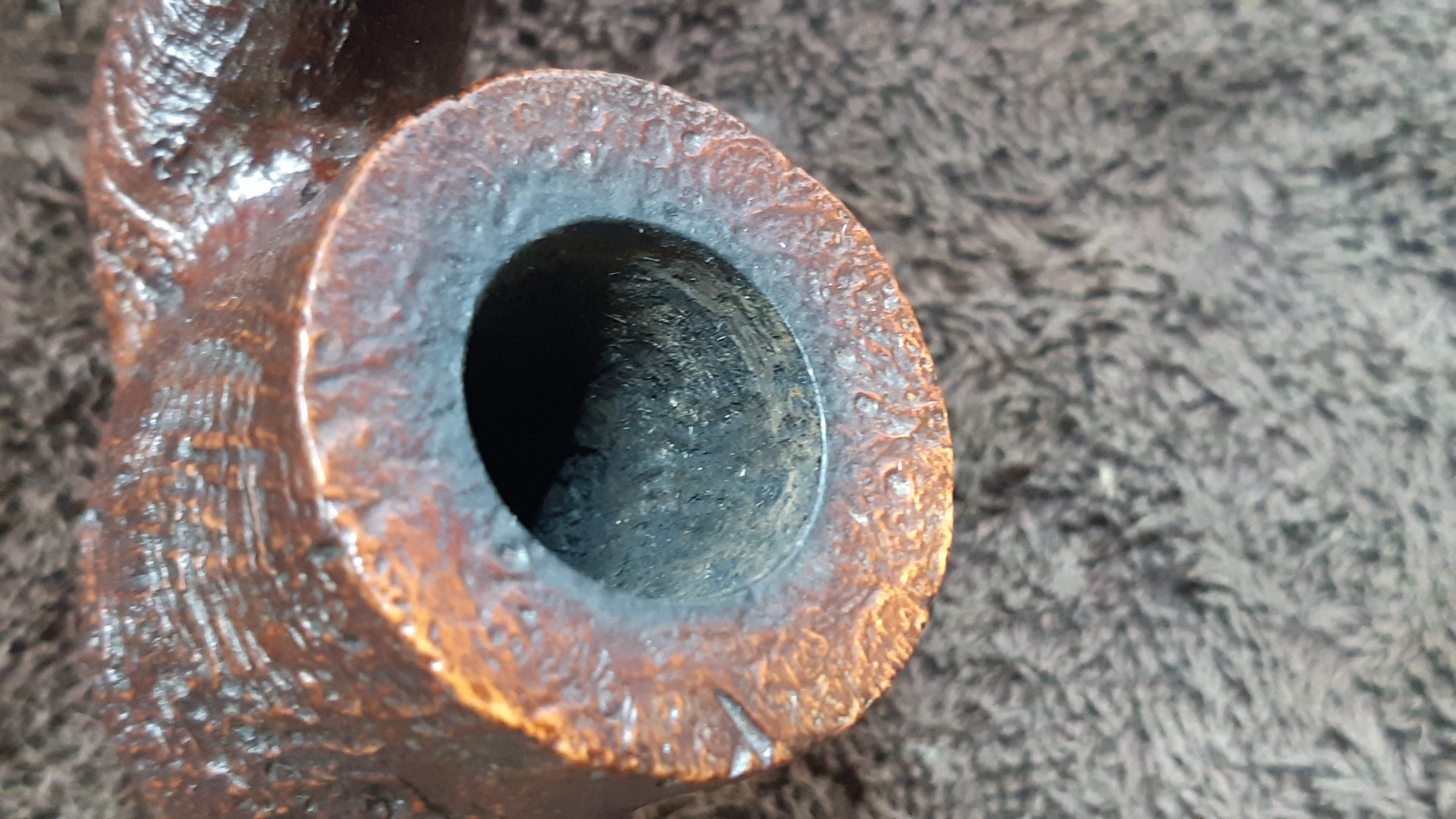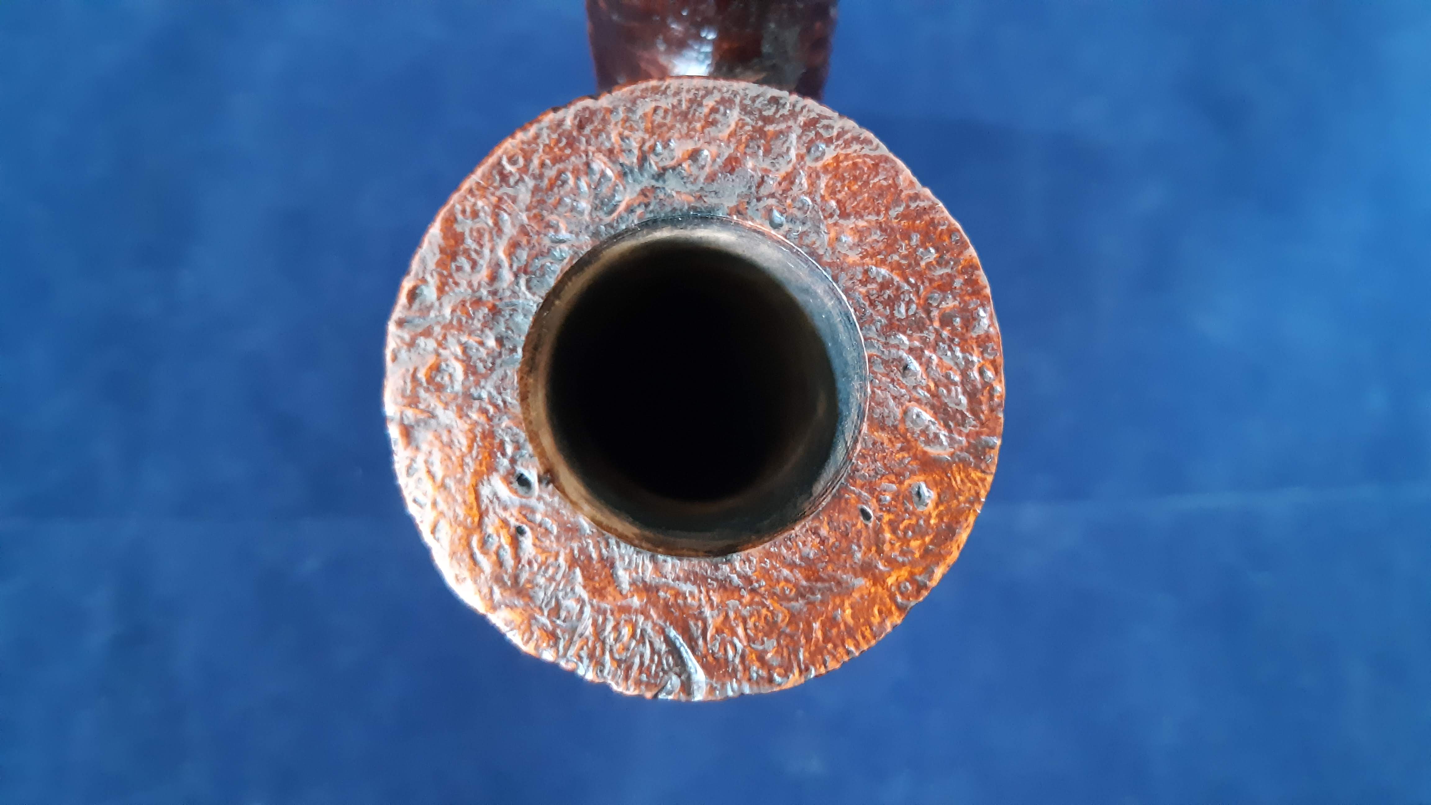 This series of pics shows the pipe as it looked when I first brought it to the worktable. It showed signs of use – a rime of smoke residue on the rim, a few small marks on the stem near the button, and a slightly tired finish – but the pipe also showed signs that it had been well cared for, including a well-trimmed cake in the chamber. Small specks of wax caught in the ring-grained sandblasted finish told me that the pipe had been buffed and polished at least once since it had been purchased.