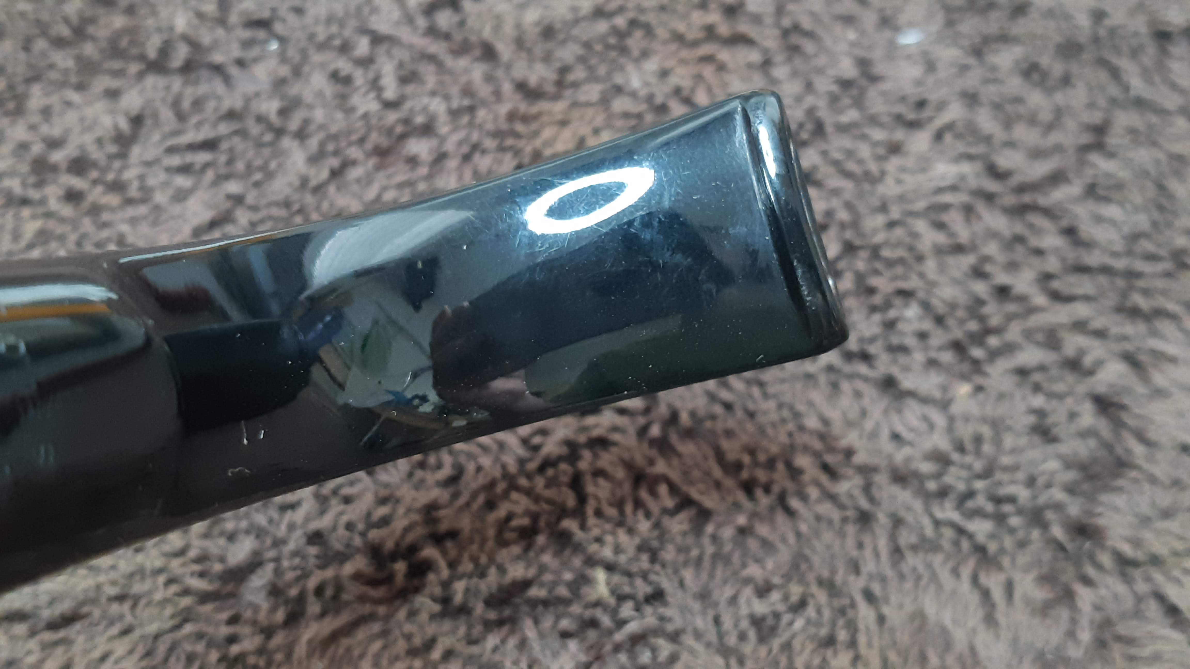 Cleaning the thin film of lava from the sandblasted rim took a bit more work. Here, instead of alcohol that might have removed some of the stain, I used cotton swabs wetted with good old saliva which contains enzymes that dissolve the tars but leave the finish underneath unharmed. Getting thr rim clean took a bit of time, but the results were worth the effort.