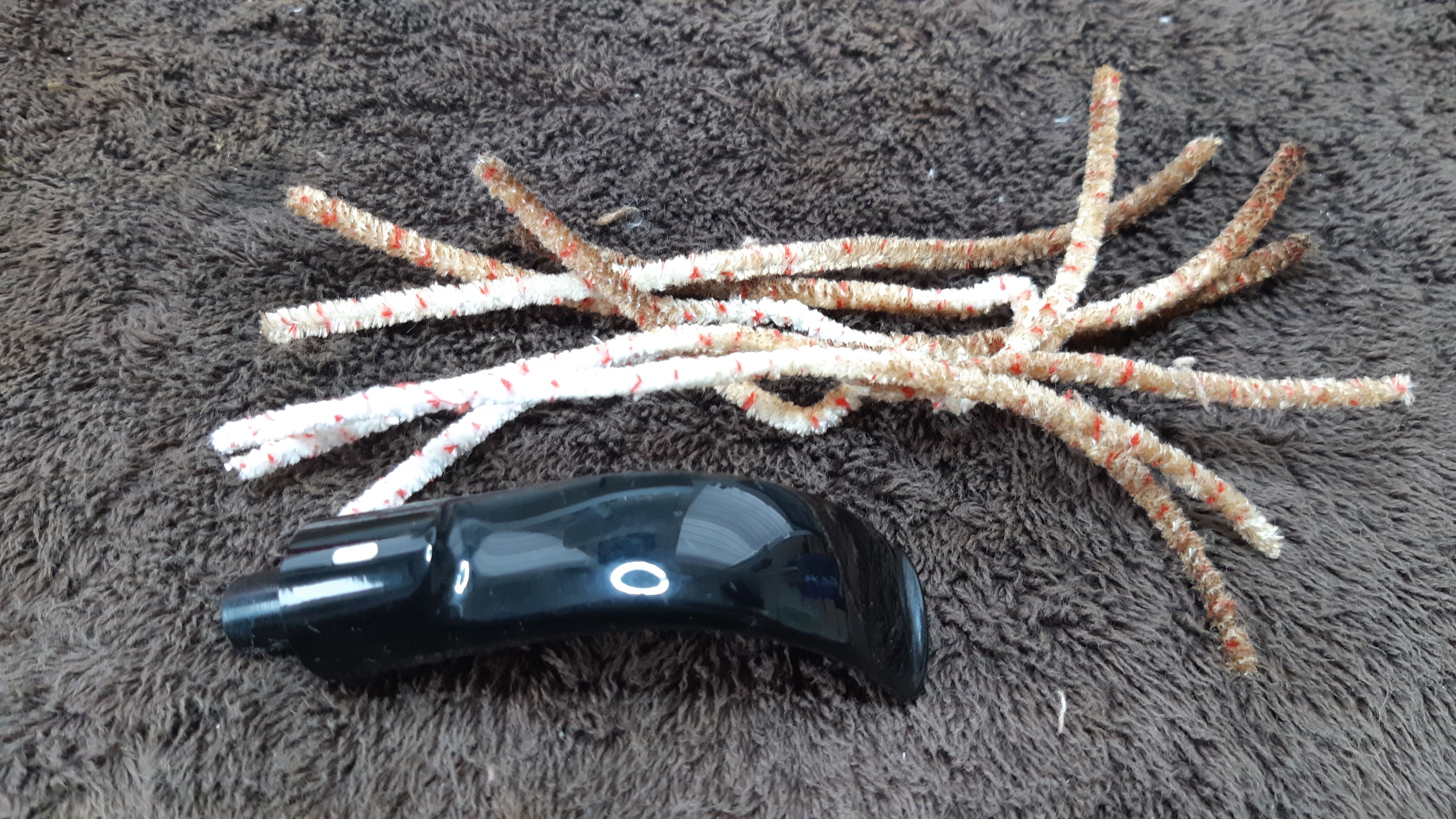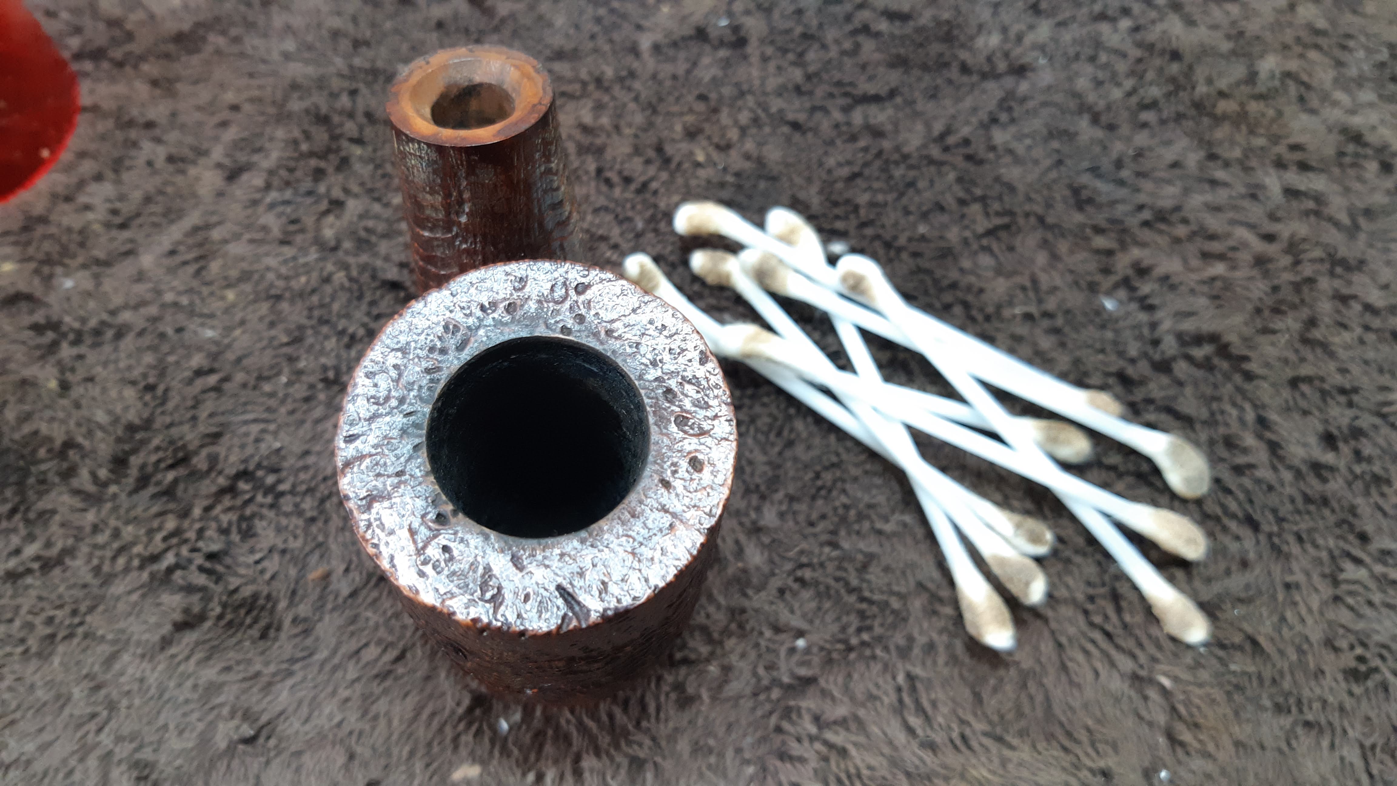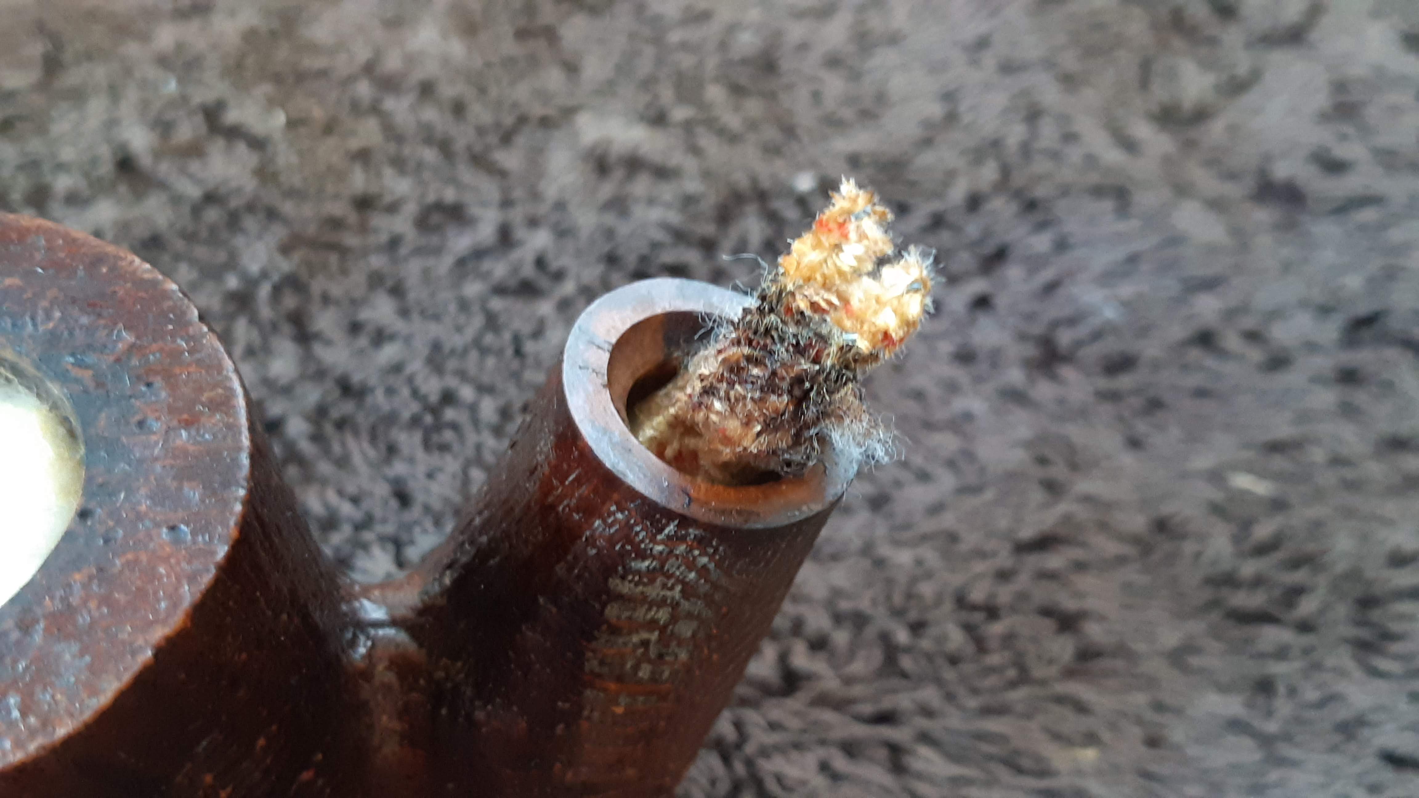 When I came back to the shop the next day, the alcohol had done its work. The dissolved tars had been soaked up and trapped by the pipe cleaner and cotton wool.