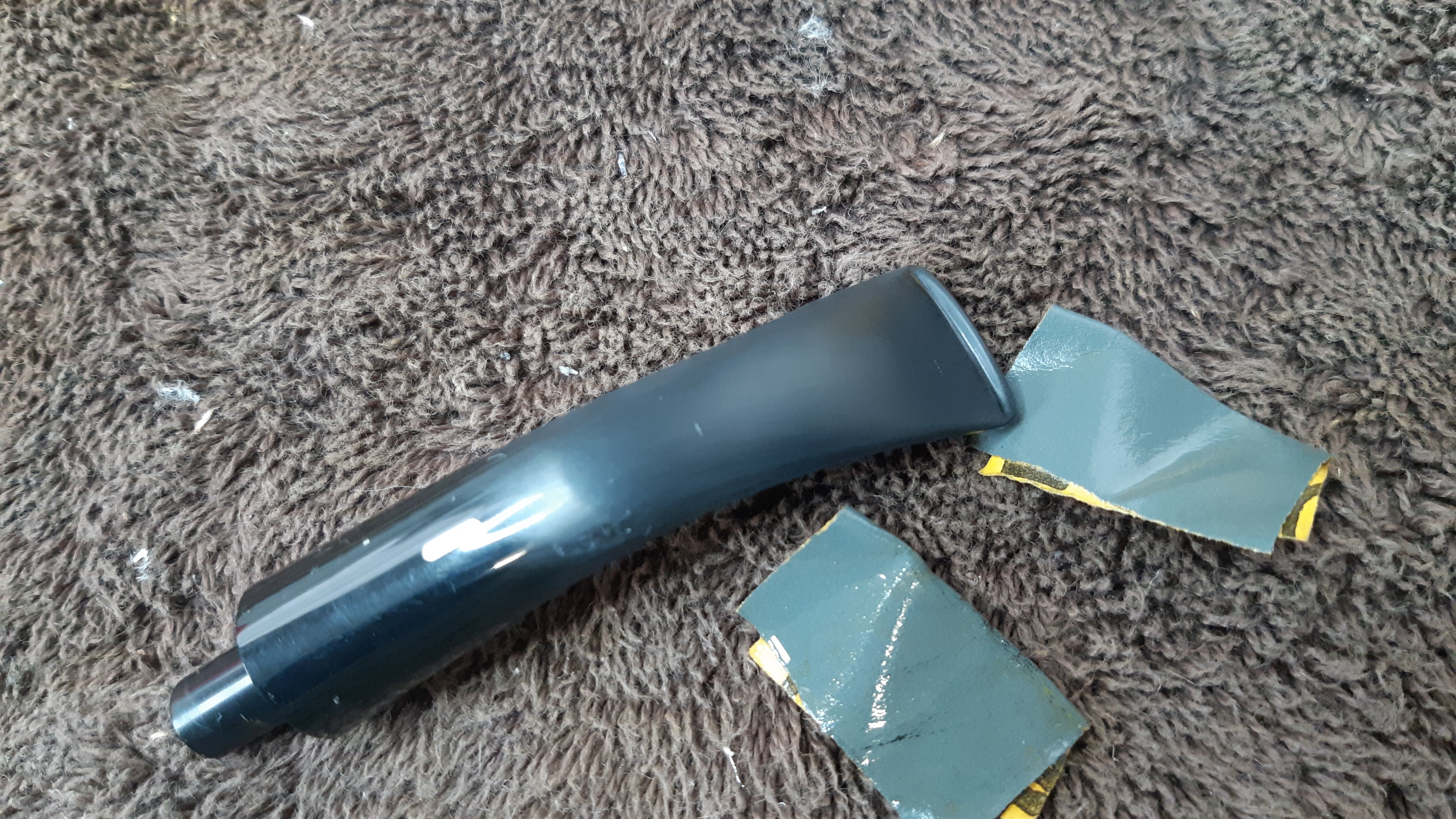 I decided to start the cleanup with the stem as I had it in hand. A small stack of pipe cleaners dipped in alcohol cleared out the accumulated tar and oils from the airway. When I was happy with the state of the internals, I took some 1000 and 2000-grit wet sandpaper to the bite area, smoothing out the tooth scratches and other handling marks.