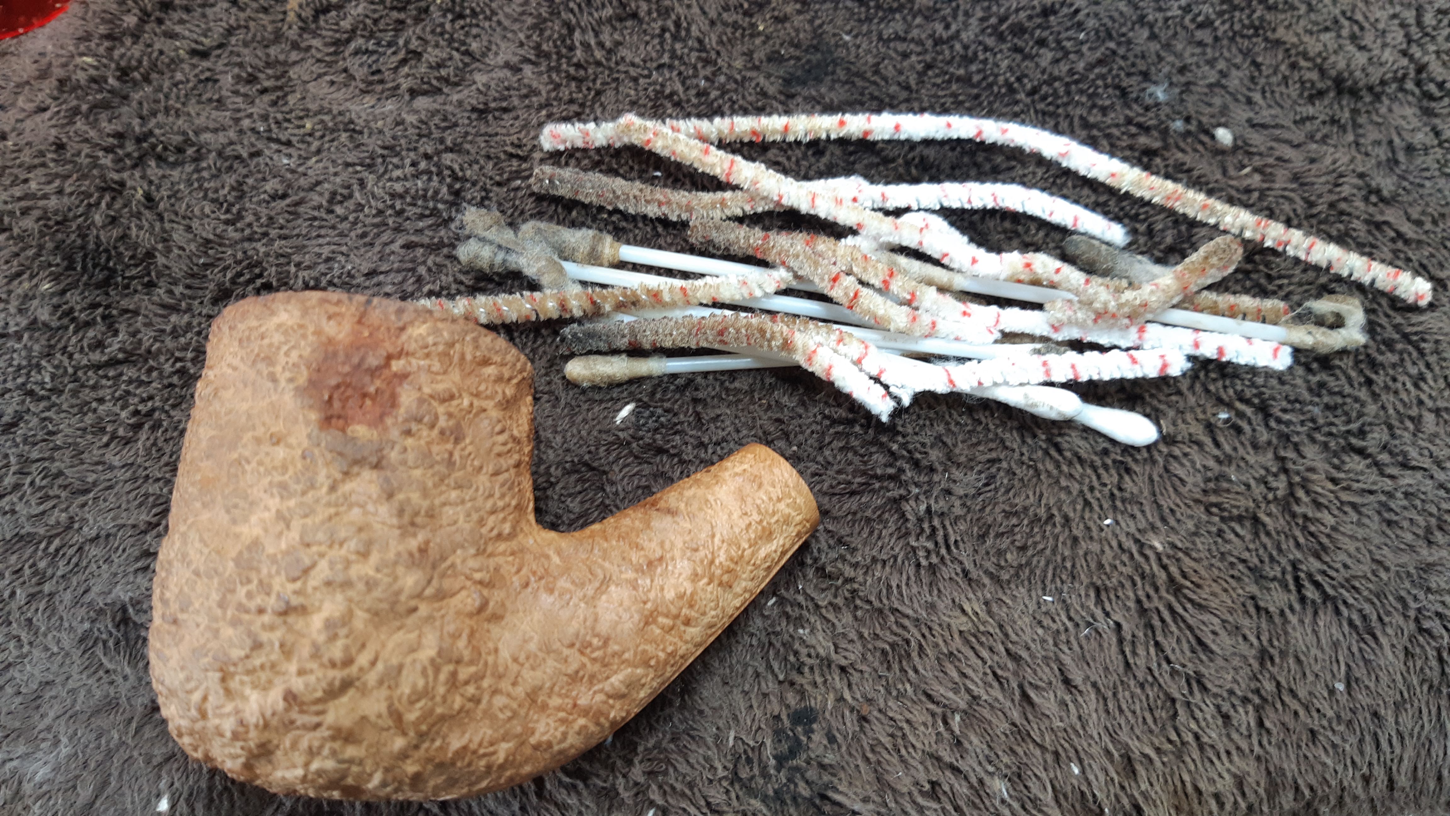 When I came back to the worktable the next morning, I could see that the alcohol treatment had done its job. Though not terribly discoloured, the cotton wool in the shank was certainly a few shades darker, and after removing the spent cotton, the pipe smelled a lot fresher.