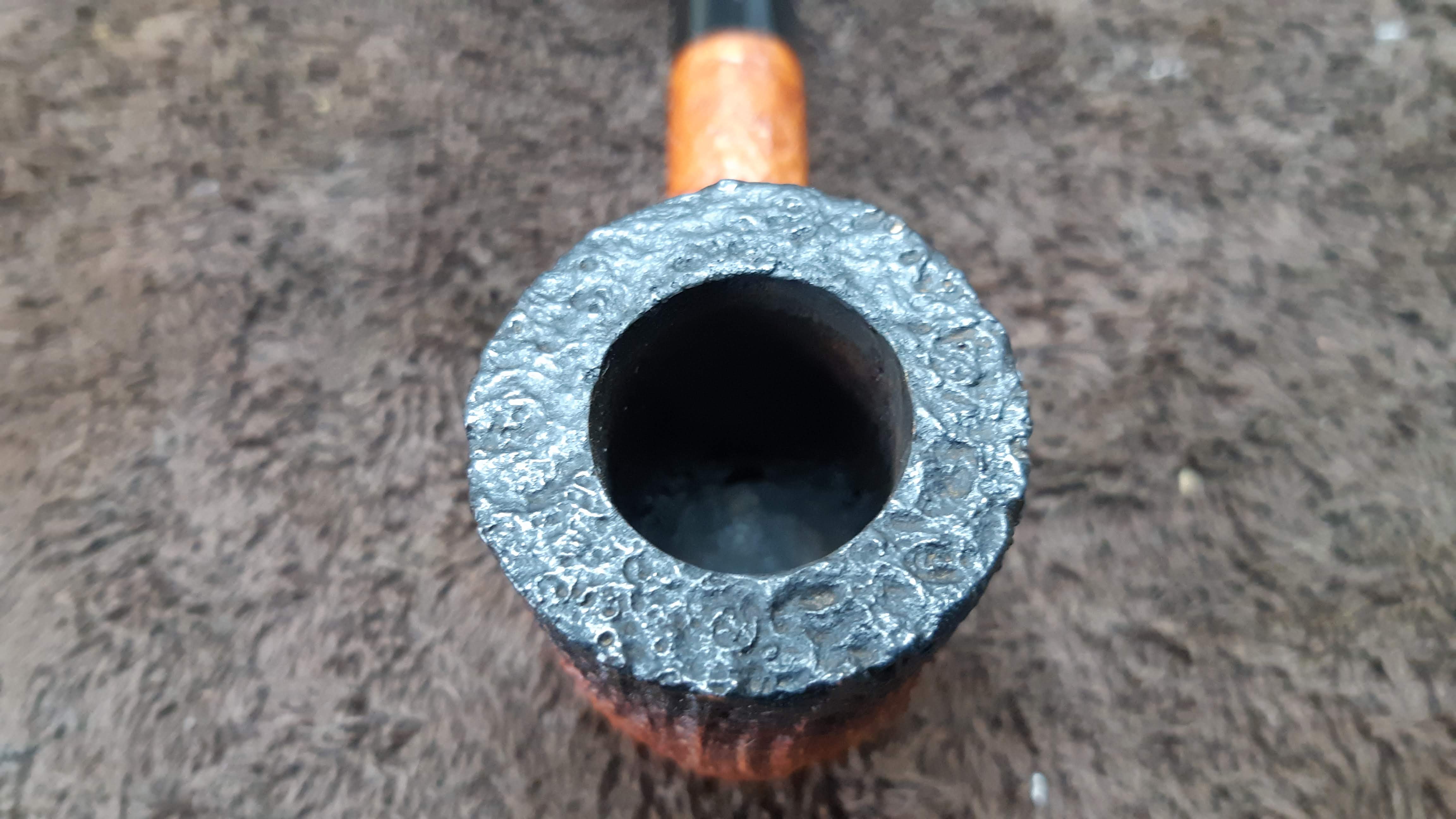 Note the black rim surface which seems to fade as it runs down the sides of the bowl. This is not dirt or carbon residue, but rather a Fumee finish (from the French word meaning “smoked”), more commonly seen on meerschaum pipes but rarely on briar.