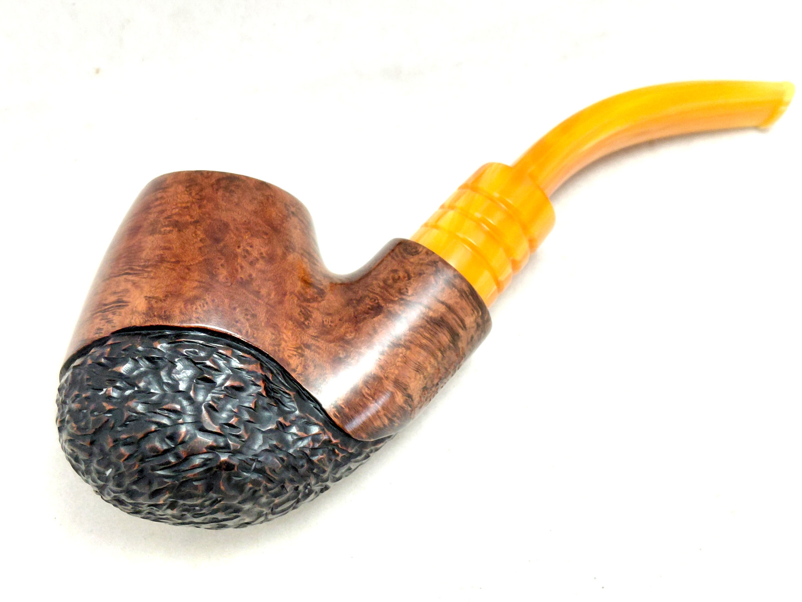 As this first series of images illustrates, Jim Boswell wasn’t kidding when he labelled this one a Jumbo. Photographed on its own, it’s difficult to understand the scale of the pipe, but the stummel is carved from a block of briar about the size of a man’s fist. The stem is just a hair under 150mm (6 inches) long and a whopping 25mm in diameter at the shank, which is still smaller than the 32mm diameter of the shank face. Boswell’s must have a stockpile of Acrylic as that diameter of rod hasn’t been available in North America for at least 6 years.